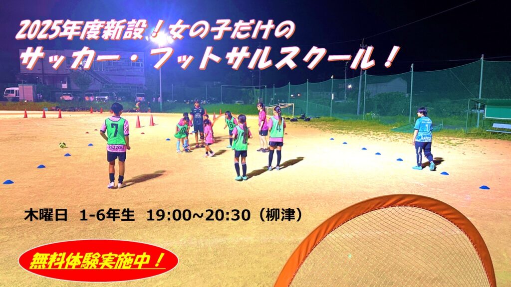 サッカー、フットサル、どちらも学べる、女の子だけのサッカー・フットサルスクールです!